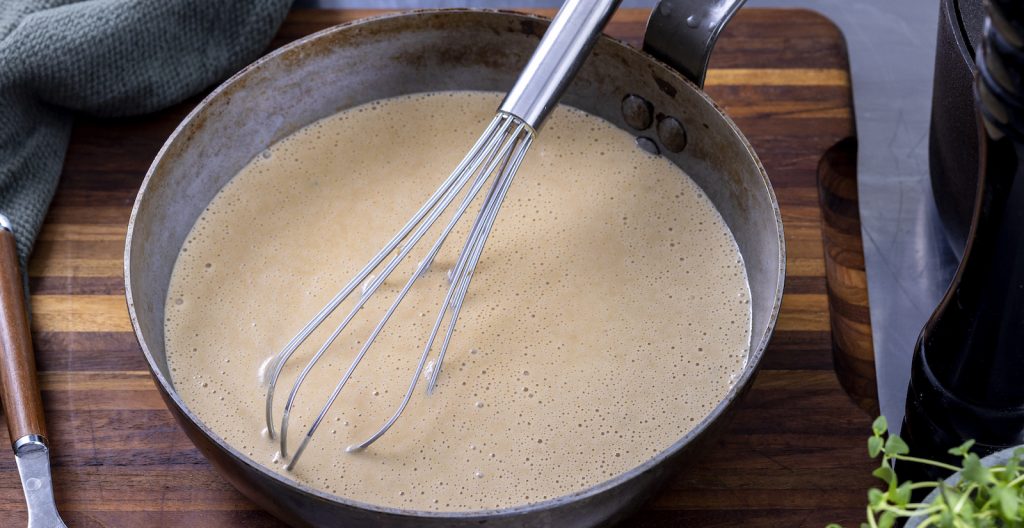 Velouté är en av grundsåserna och påminner om bechamell, men istället för mjölk tillreds den med buljong. Den gör sig utmärkt i gratänger och stuvningar, men fungerar också finfint som den är och som komponent på tallriken.